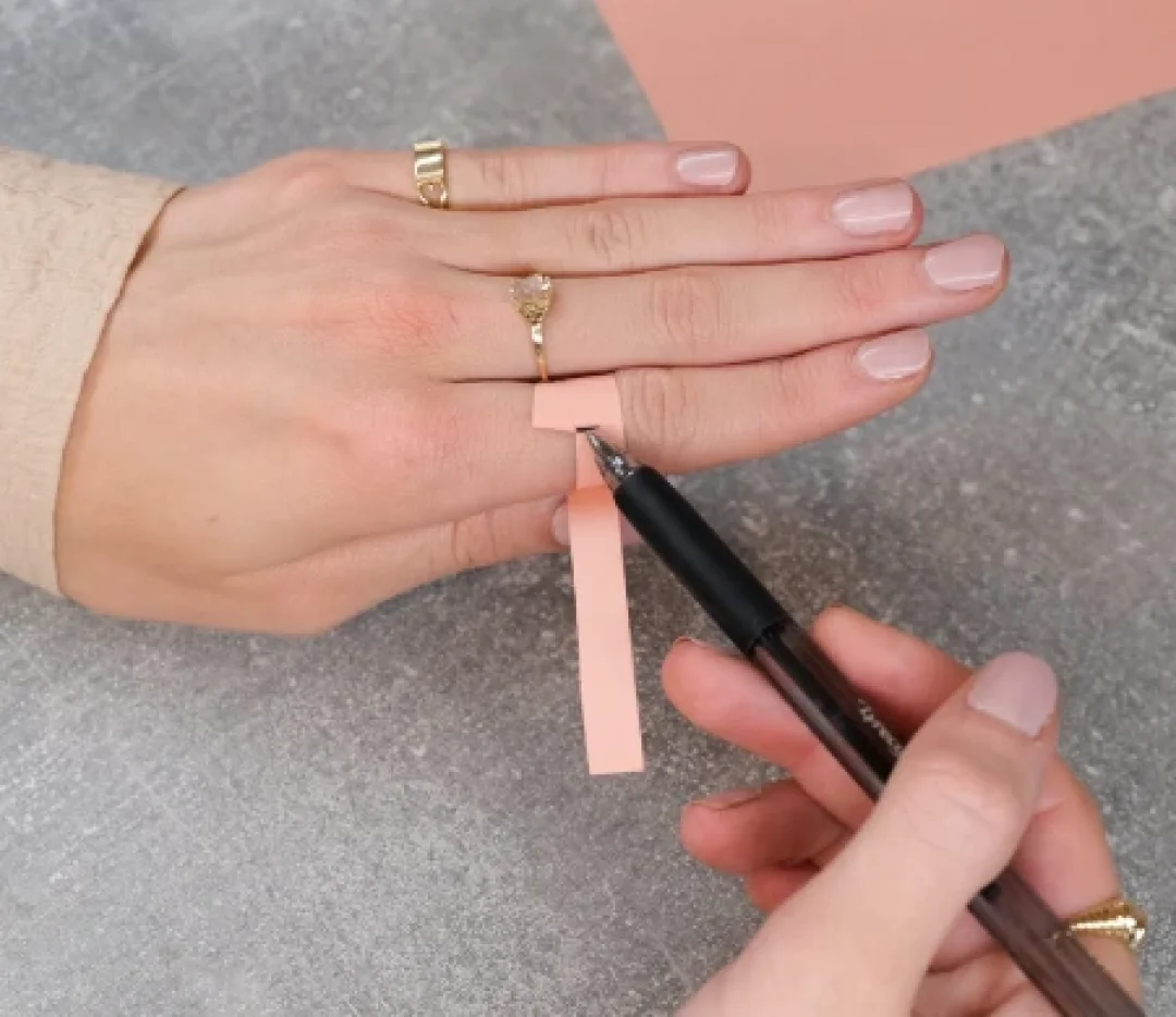 Wrap the piece of paper around your finger. Measure the finger on which you want to wear your new ring.